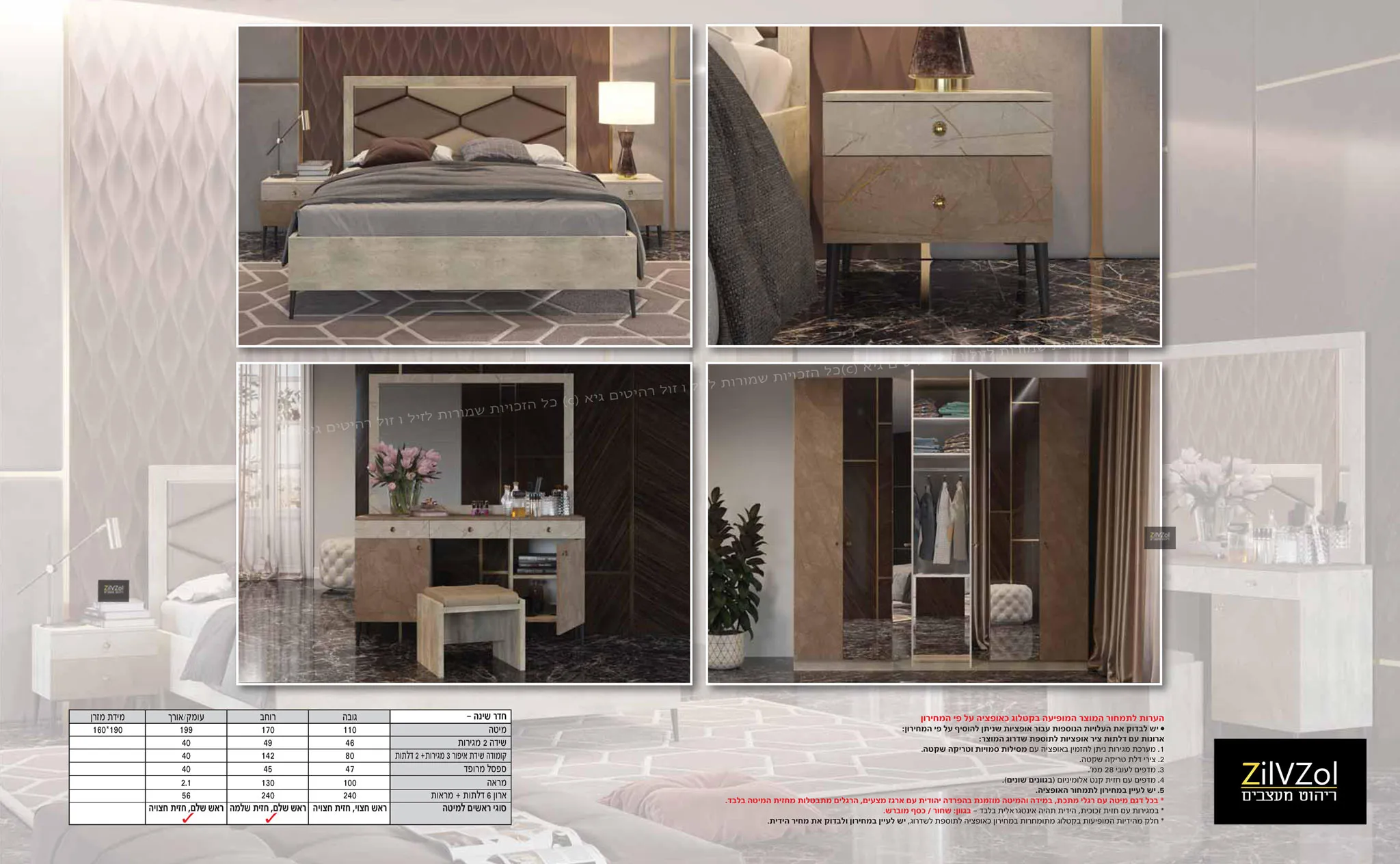 חדר השינה ניתן גם במידות בהתאמה אישית מול נציג המכירות.