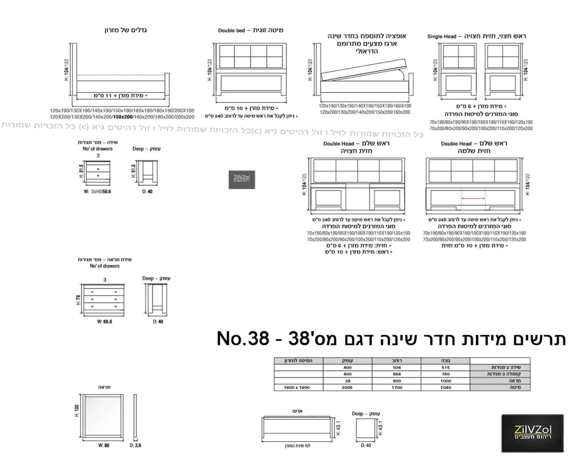 יתכן תוספת מחיר בהתאם ולפי המידות, שדרוגים או לפרמטרים שונים.